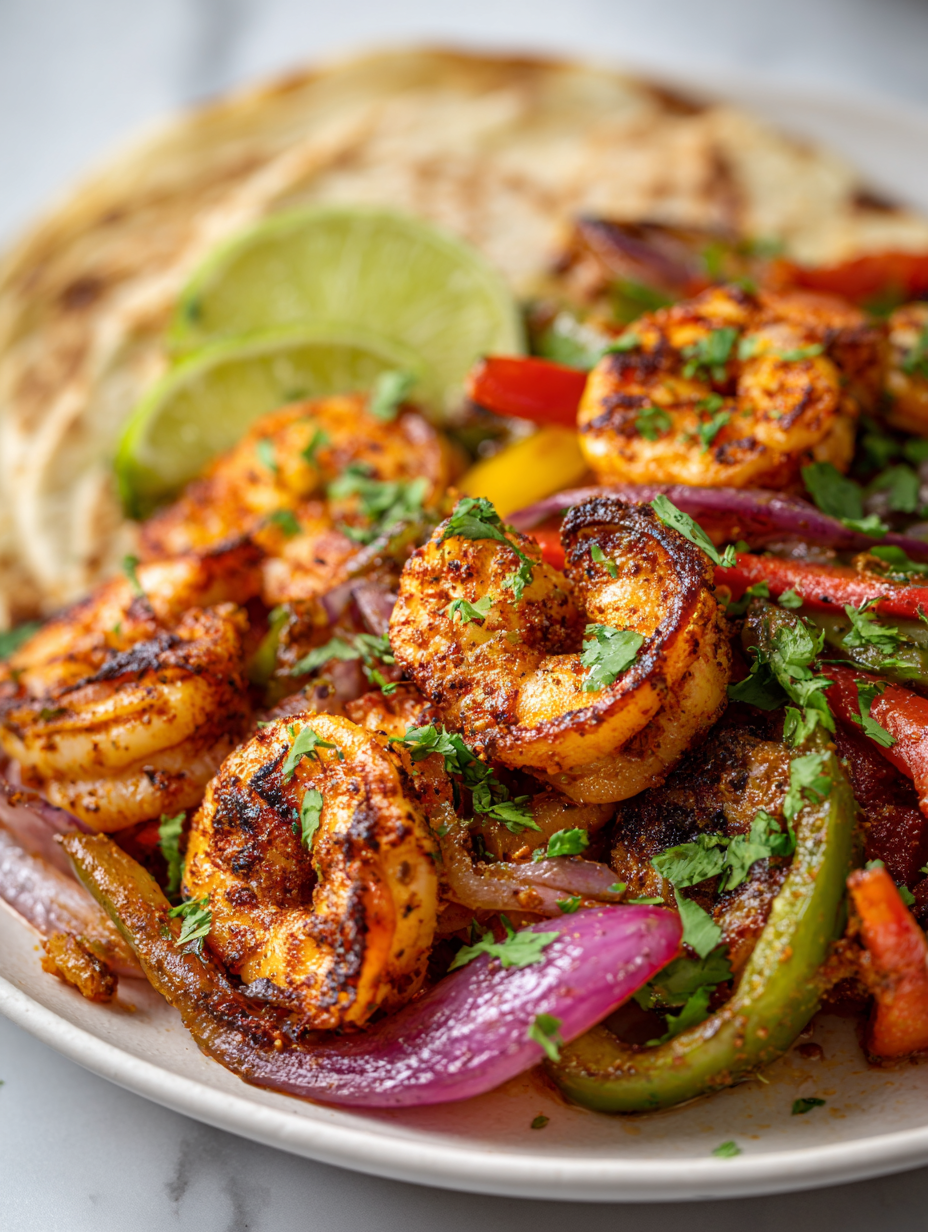 • This recipe started from a weekend of rummaging through my fridge and wanting something quick, smoky, and full of flavor. I realized that using my grill pan brought out this unexpected char that made the shrimp and peppers taste like they’d just come off a fire pit. It’s a simple tweak, but it changed how I think about fajitas — less about the skillet and more about embracing the grill’s smoky hug.