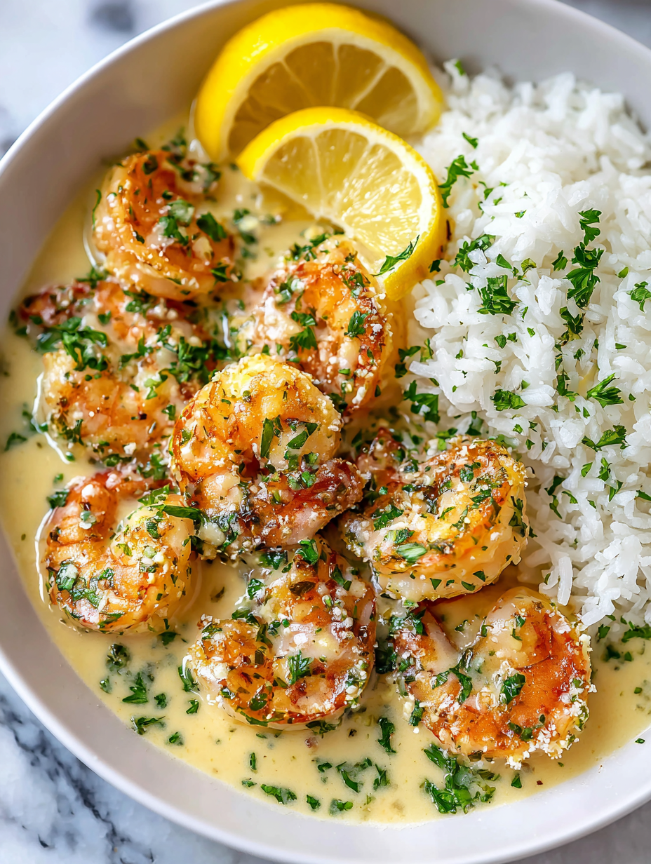 Focusing on how the bright, lemon-infused sauce transforms the humble shrimp into a restaurant-quality dish that feels both special and approachable for home cooks.