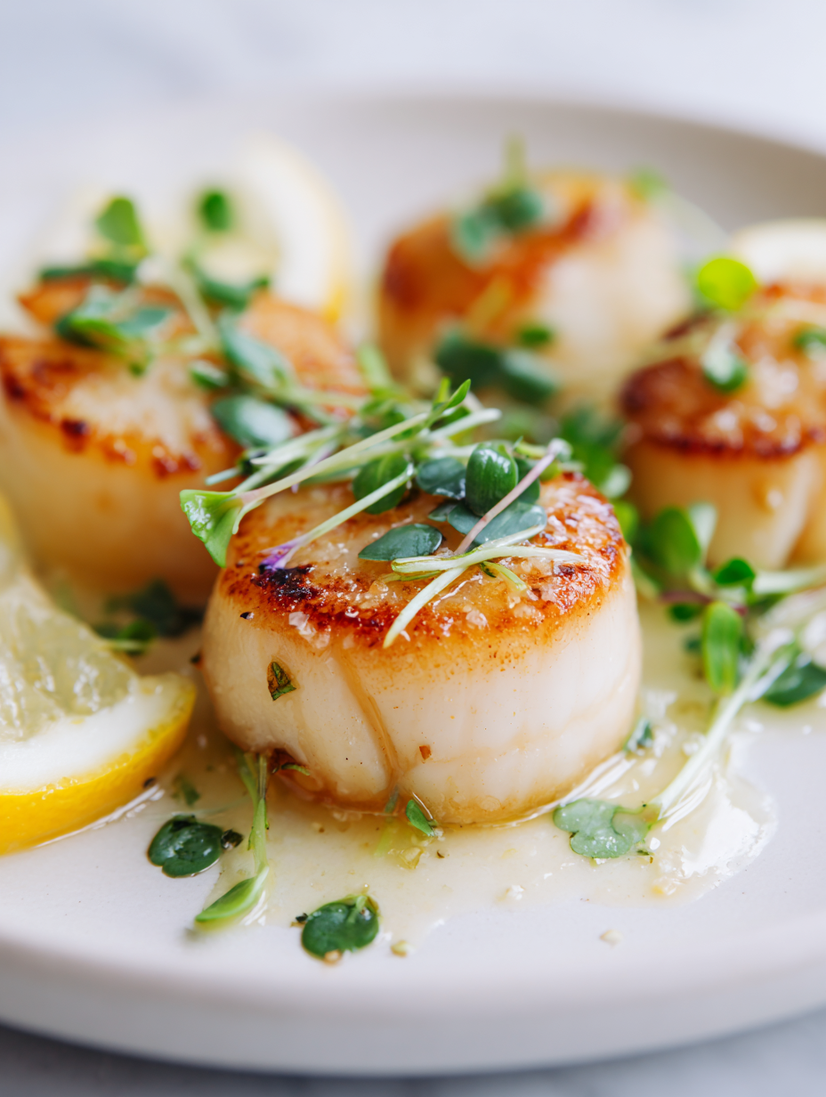 - Drizzle the warm pan sauce over the scallops, and squeeze additional lemon juice for brightness. Serve immediately while the crust is crispy and the interior tender.