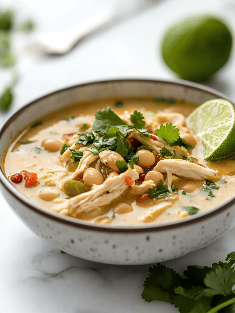 As the weather cools, this white chicken chili becomes a go-to for its warmth and effortless flavor. It’s great for meal prep, sharing at gatherings, or just soothing a chilly evening. The blend of creamy notes and gentle heat makes it a comforting yet exciting choice to keep in your culinary arsenal.